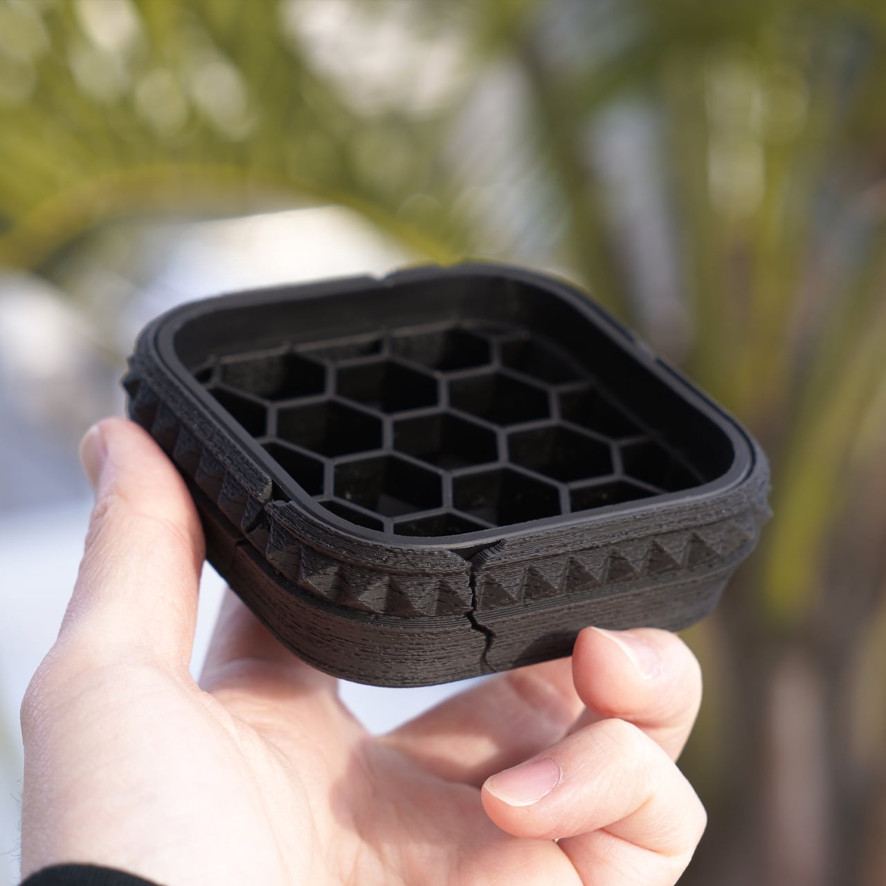 プレステラプレートは、R3LABOが開発した着脱式メッシュ構造を備えた園芸用受け皿“UKEZARA”をベースに、日本ポリ鉢販売株式会社との共同開発によって生まれた商品です。
